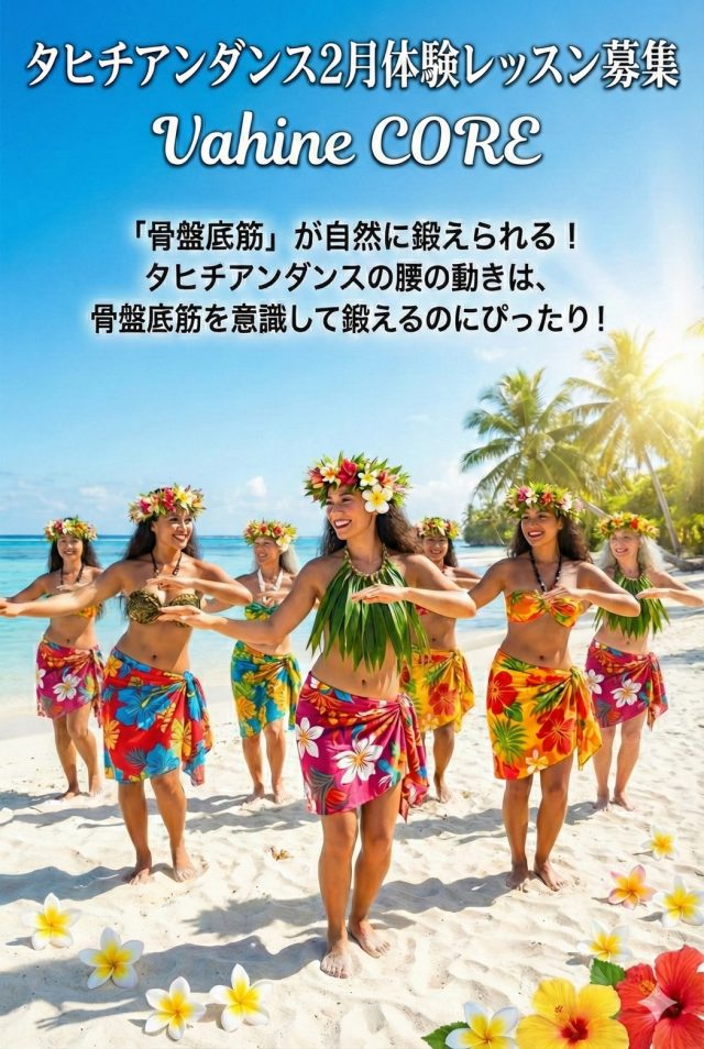 🌺2月体験レッスン受付中🌺 内側から、しなやかに✨ Vahine CORE(ヴァヒネコア) Vahine COREは、 タヒチアンダンスの動きから生まれた 女性のためのコアワーク。 しなやかに腰を動かす中で、 身体の内側...